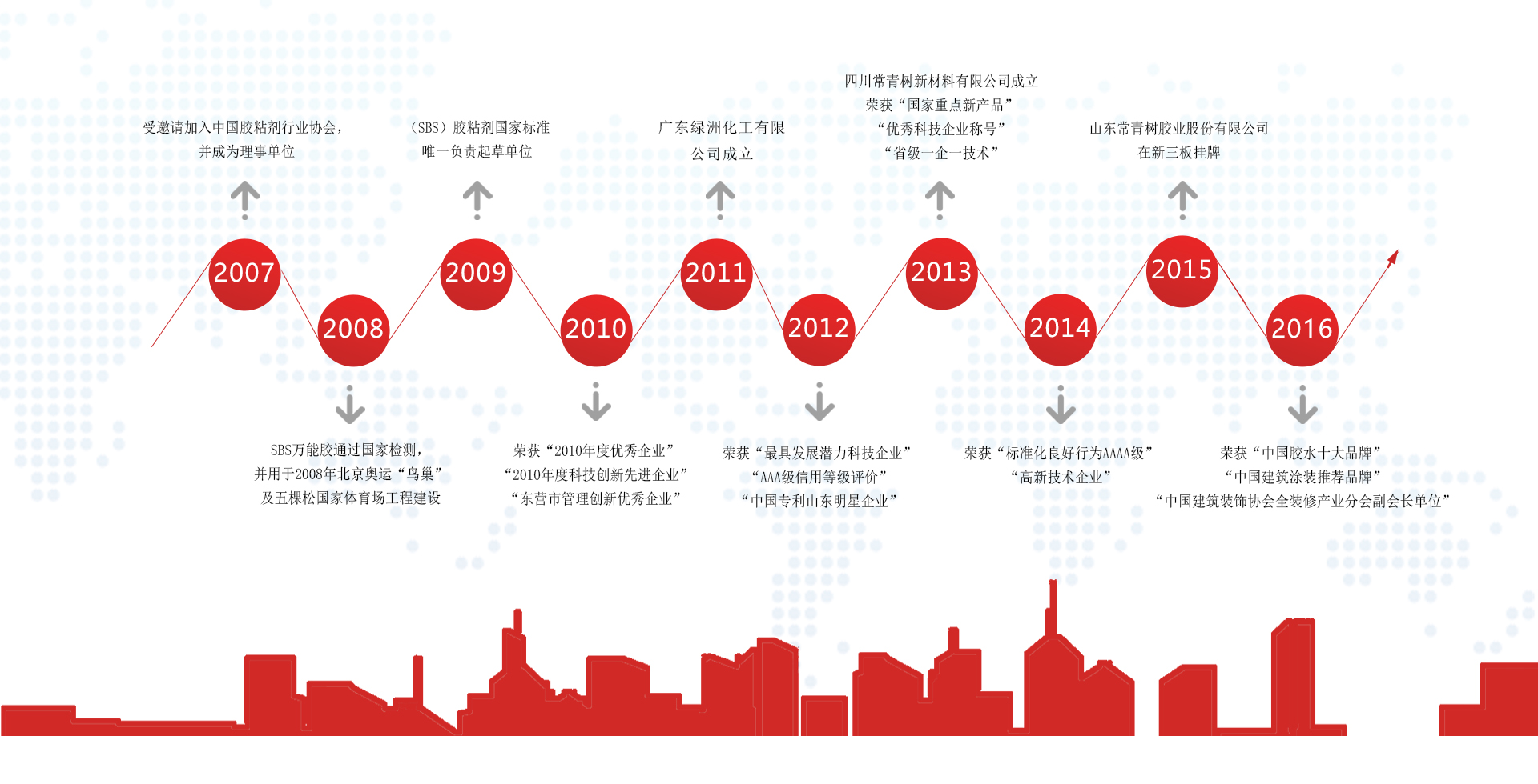 山東常青樹膠業股份有限公司旗下包括廣東綠洲化工有限公司、四川常青樹新材料有限公司, 總占地面積約247畝,健康寶萬能膠、噴膠、白乳膠、硅酮玻璃膠、聚氨酯泡沫填縫劑、免釘膠及鞋膠等 七大系列共百種產品的研發、生產和銷售,產品質量穩定、品質超群。